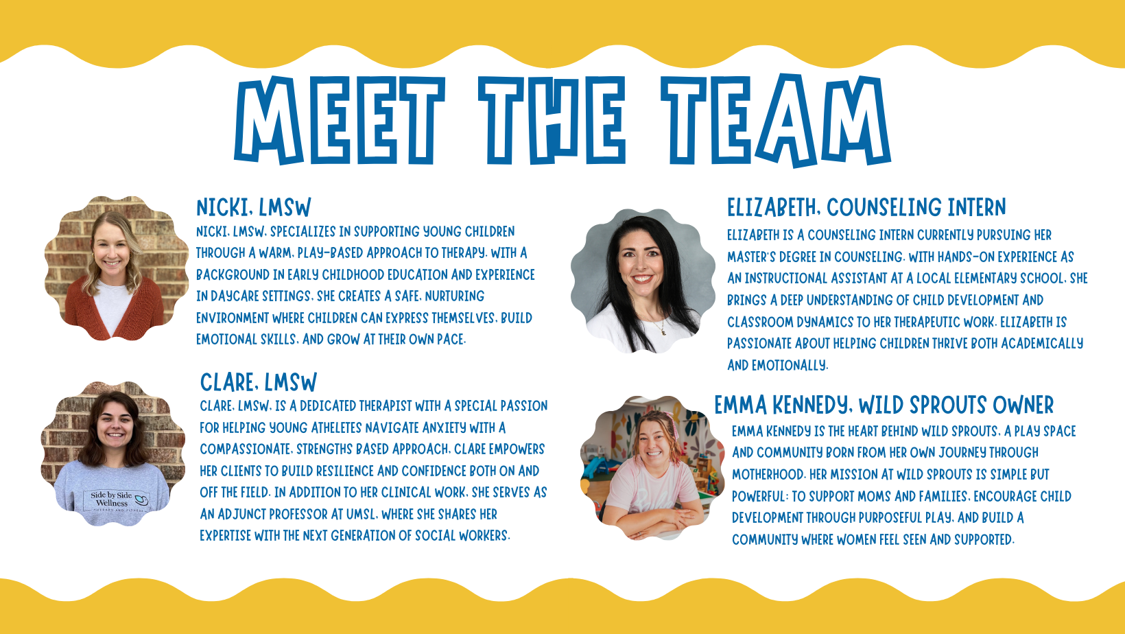 Each Day Includes: Themed Activities lead by Side by Side Wellness Staff, A Snack & Plenty of Playtime in the Wild Sprouts Playroom!